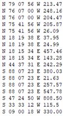 My FIRST line is: N 79 07 56 W 213.47